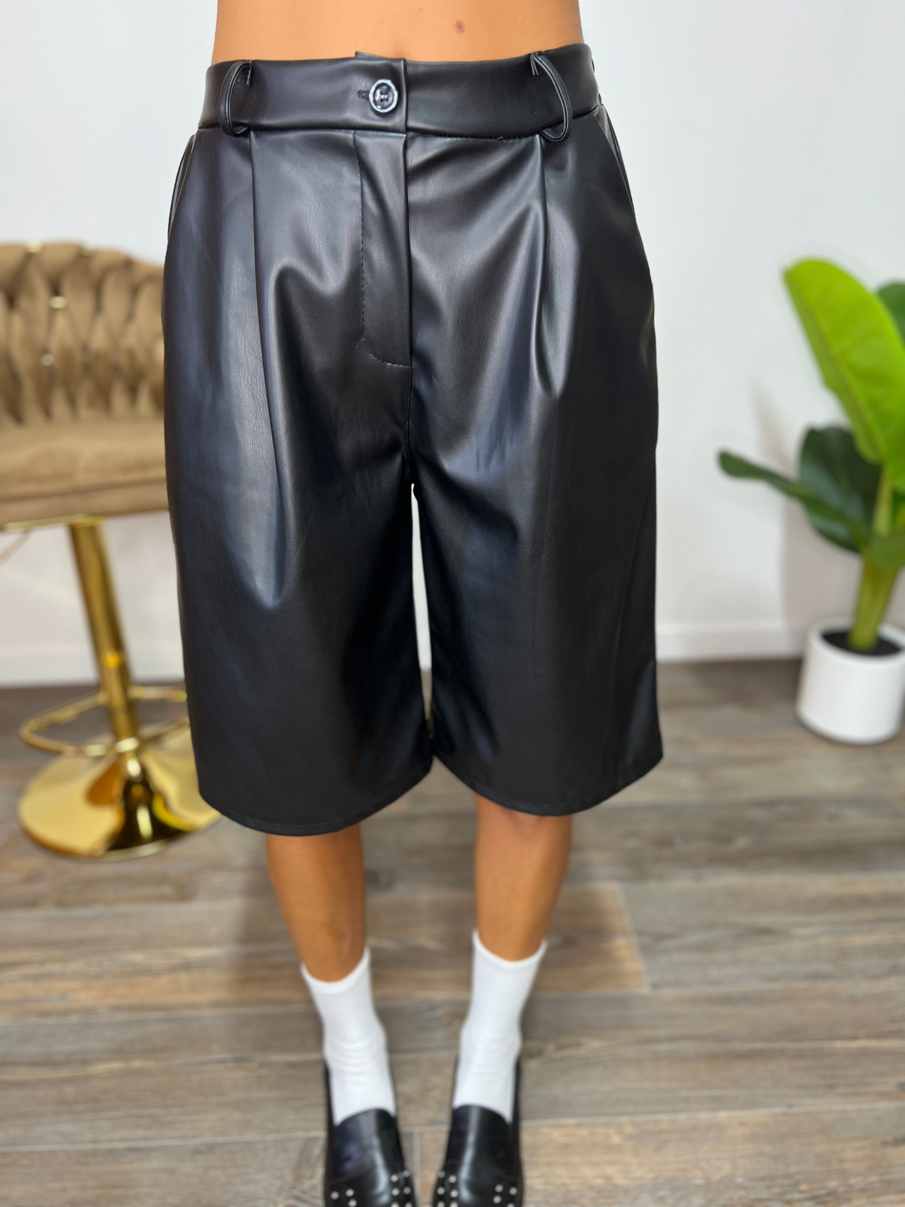 DETTAGLI : Bermudone in ecopelle - Elastico sulla parte posteriore - Tasche laterali - Passanti per cintura - Leggermente Felpato