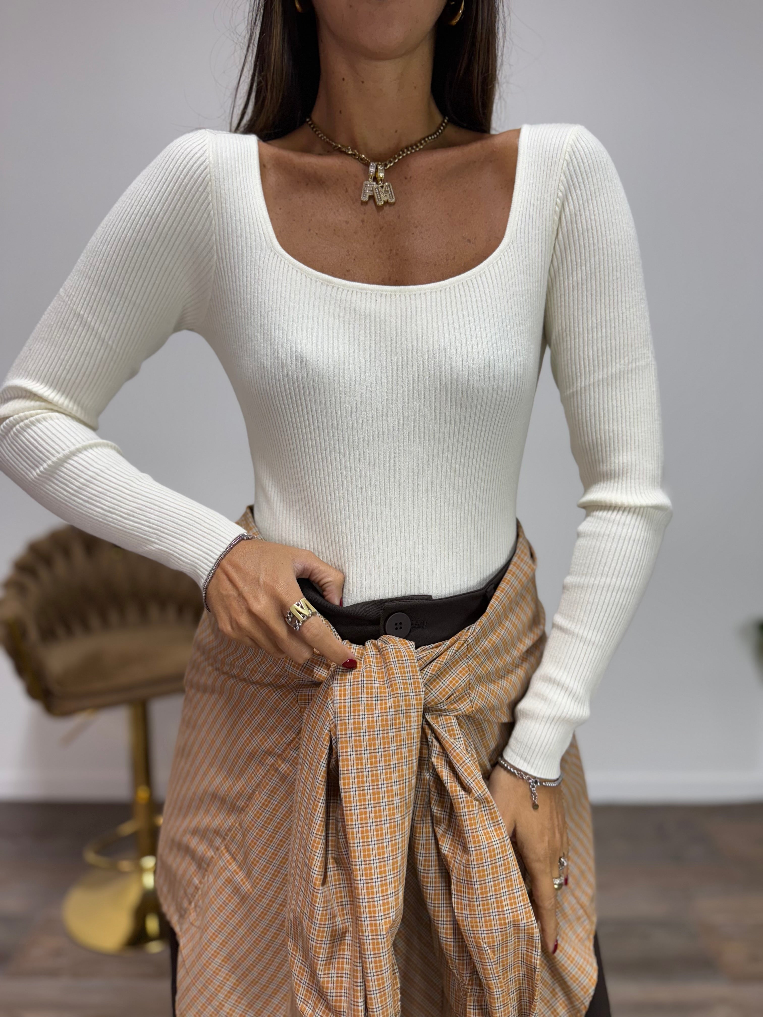 DETTAGLI :Body in viscosa a costine - manica lunga - Scollo Quadrato -