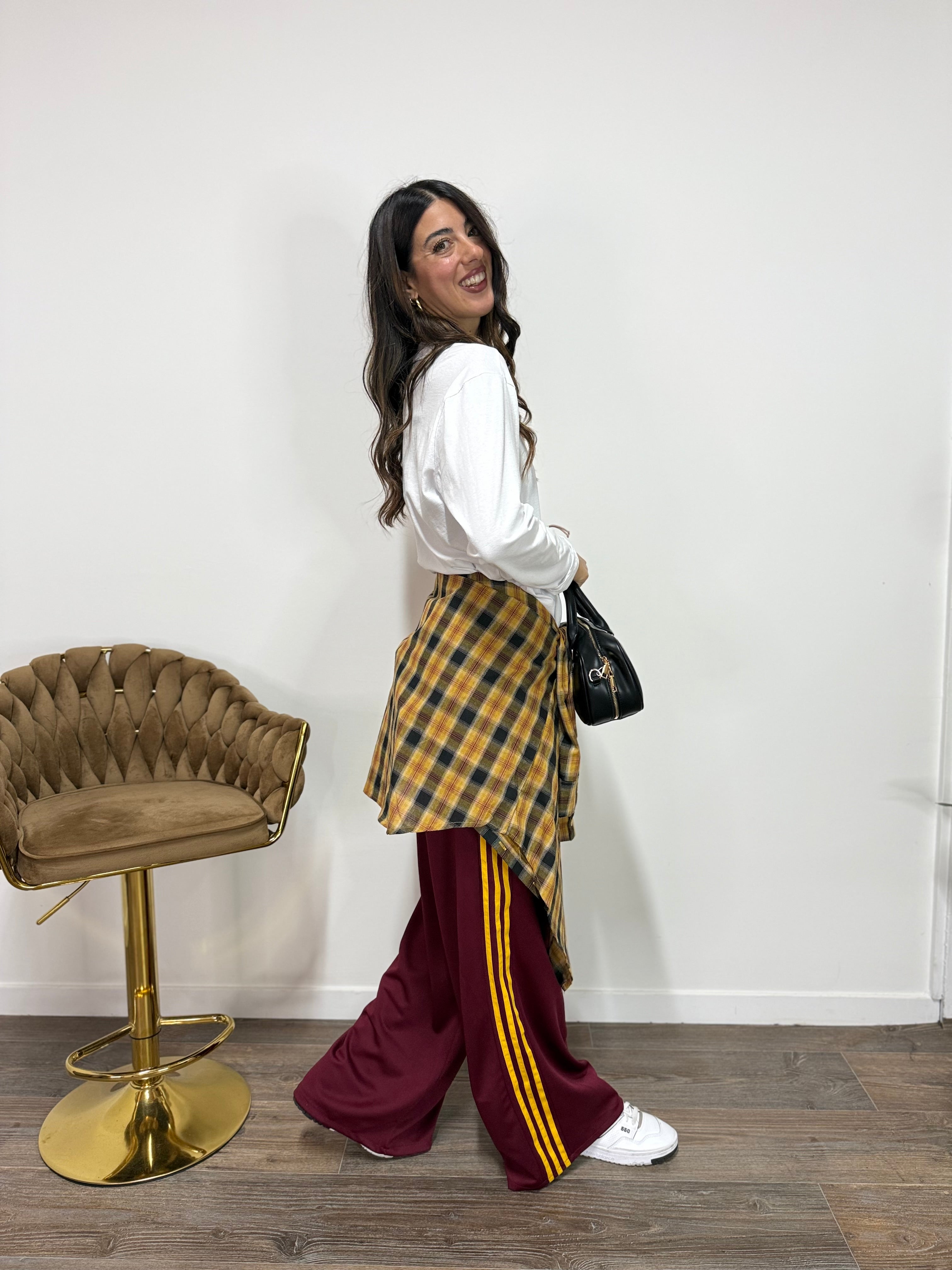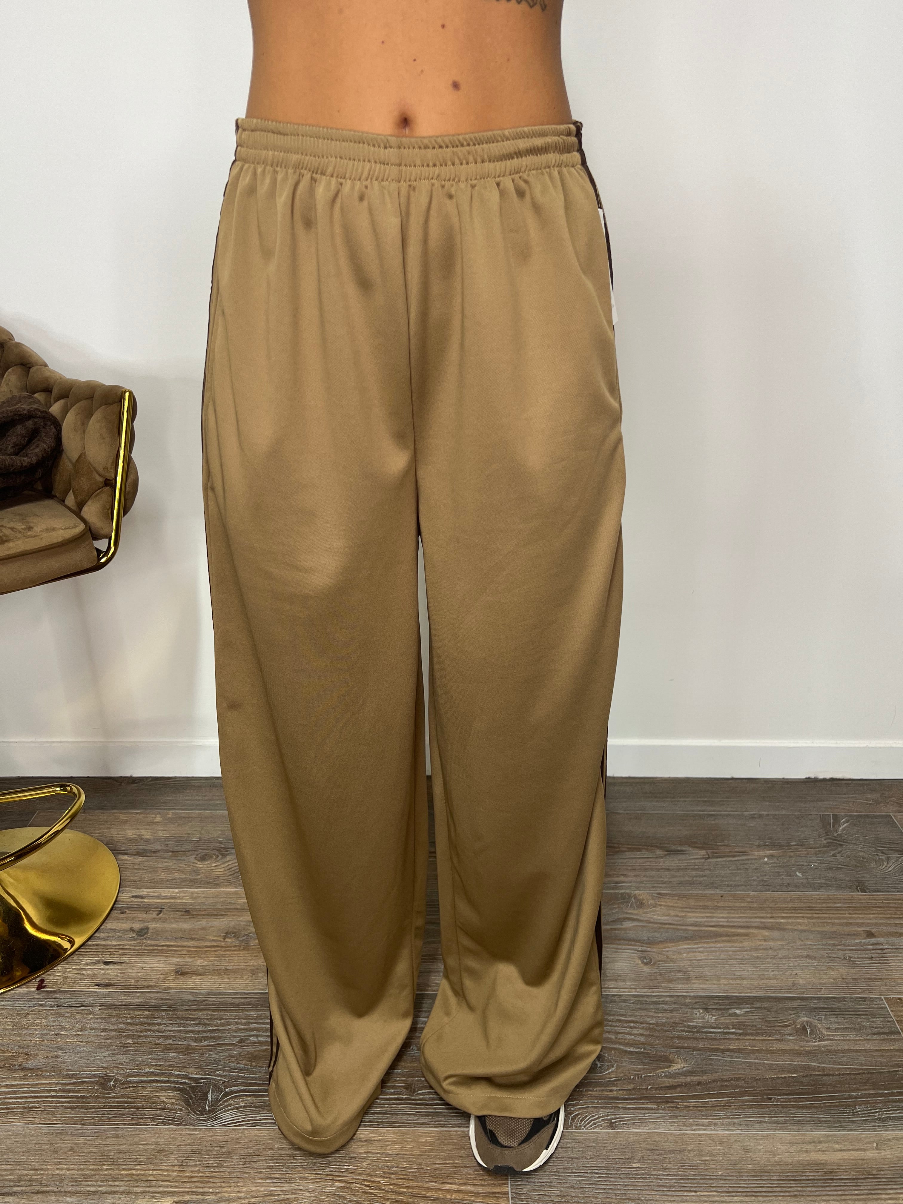 DETTAGLI :Pantalone a palazzo - Elastico su tutto il girovita - Tasche Laterali - Riga tripla gialla su tutta la lunghezza - Acetato